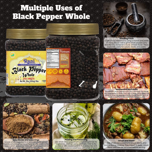 Rani Black Pepper Whole (Peppercorns), Premium MG-1 Grade 16oz (454g) ~ Gluten Free | Non-GMO | Natural Perfect size for Grinders | Kosher