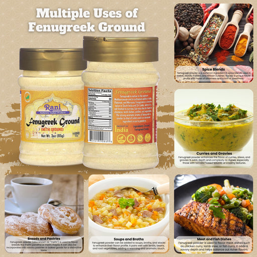 Product Type: Ground PowderPackaging: PET JarNet Wt. 3oz (85g)Product of India Ingredients: Fenugreek Seeds (Methi) You'll LOVE our Fenugree...