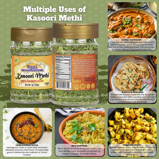 Product Type: Dried LeavesPackaging: Plastic JarNet Wt. 1oz (28g) Product of India Ingredients: Kasoori dried leaves You'll LOVE our Fenugre...