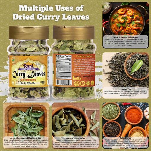 Product Type: Dried LeavesPackaging: Plastic JarNet Wt. : 0.21oz (6g)Product of India Ingredients: Dried Curry Leaves (Leaf) You'll LOVE our C...