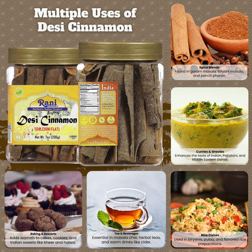 Product Type: Flat CinnamonPackaging: Pet JarNet Wt. 7oz (200g)Product of India Ingredients: Cinnamon Sticks You'll LOVE our Desi Flat Cinnamon...