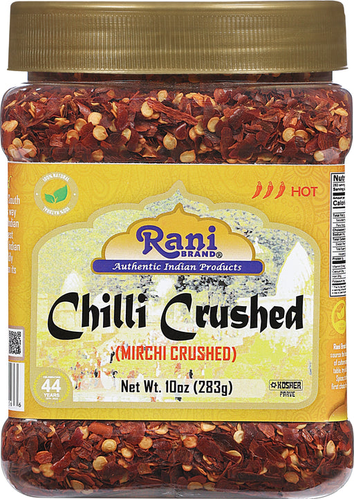 Product Type: Crushed ChilliPackaging: Plastic JarNet Wt. 2oz (56g)Product of India Alternative Name (Indian) Hot Mirchi Ingredients: Crushed Chil...