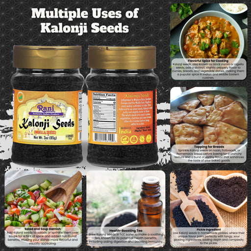 Product Type: Kalonji SeedPackaging: PET JarNet Wt. 3oz (85g)Product of India Ingredients: Kalonji (Nigella) Seeds You'll LOVE our Kalonji (Nigell...