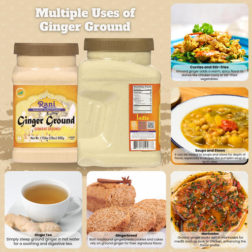 Product Type: Ground PowderPackaging: Plastic Bag / JarProduct of IndiaIngredients: Ginger Powder You'll LOVE our Ginger Ground by Rani Brand--Her...