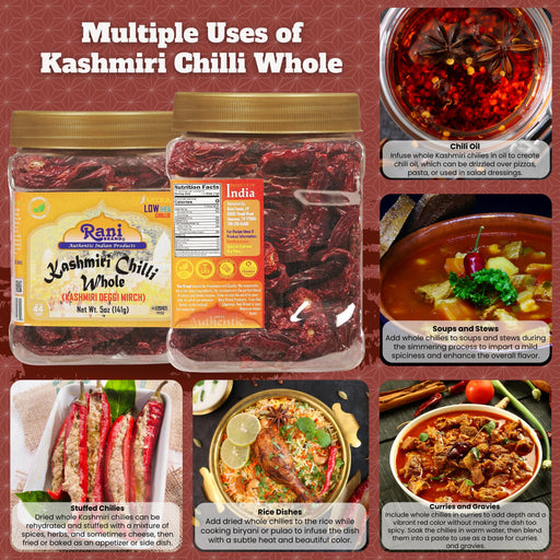 Product Type: Whole ChilliPackaging: Plastic JarNet Wt. 5oz (141g)Product of India Ingredients: Kashmiri Chilli You'll LOVE our Kashmiri...