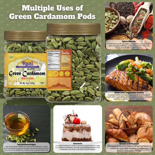 Product Type: Whole Seeds, 100% recleaned Packaging: PET Jar Net Wt. 14oz (400g) Product of India Alternative Name (Indian) Hari Elachi Ingredi...