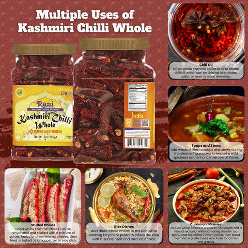 Product Type: WholePackaging: Plastic JarNet Wt. 9oz (255g)Product of India Ingredients: Kashmiri Chilli Whole You'll LOVE our Kashmiri Chilli...