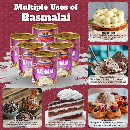 Product Type: SweetsPackaging: CanNet Wt. 35.3oz (2.2lbs) 1kg, Pack of 6Product of India Ingredients: Sugar Syrup, Cottage Cheese (Cheena of Cow M...