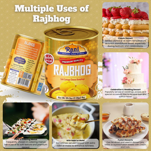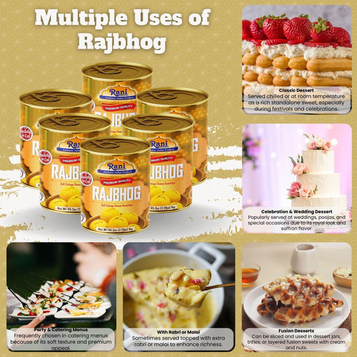 Product Type: SweetsPackaging: CanNet Wt. 35.3oz (2.2lbs) 1kg Pack of 6Product of India Ingredients: Sugar Syrup, Cottage Cheese (Cheena of Cow Mi...