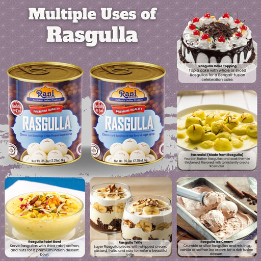 Product Type: SweetsPackaging: CanNet Wt. 35.3oz (2.2lbs) 1kg Pack of 2Product of India Ingredients: Sugar Syrup, Cottage Cheese (Cheena of Cow Mi...