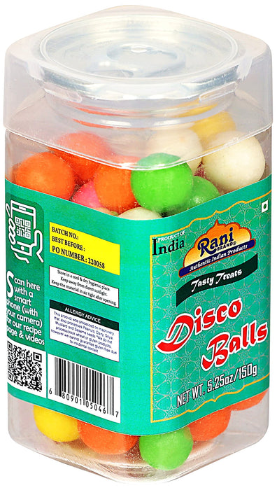 Rani Disco Balls 5.25oz (150g) Vacuum Sealed, Easy Open Top, Resealable Container ~ Indian Tasty Treats | Vegan | Gluten Friendly | NON-GMO | Indian Origin