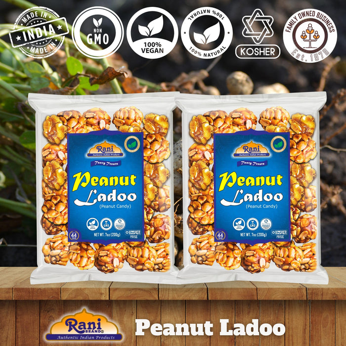 Rani Peanut Ladoo (Round Peanut Brittle Candy) 7oz (200g) x Pack of 2 ~ All Natural | Vegan | Kosher | No colors | Gluten Friendly | Indian Origin