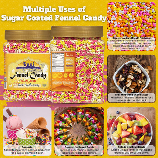 Product Type: CandyPackaging: Plastic JarNet Wt. 32oz (2lbs) 908gProduct of India Ingredients: Fennel Seeds, Sugar & Permitted Food Coloring ...