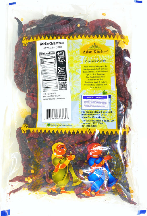 Product Type: Dried Whole ChiliesPackaging: Plastic BagNet Wt. 3.5oz (100g)Product of IndiaIngredients: Chili Whole Though originating in Cen...