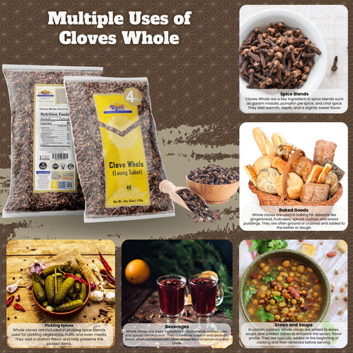 Product Type: ClovesPackaging: Plastic BagsNet Wt. 28oz (800g)Product of India Ingredients: Cloves You'll LOVE our Whole Cloves by Rani Brand--Her...