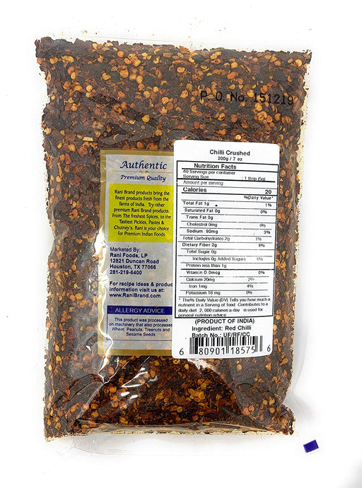 Product Type: Crushed ChilliPackaging: Plastic BagNet Wt. 7oz (200g)Product of India Alternative Name (Indian) Hot Mirchi Ingredients: Crushed Chi...