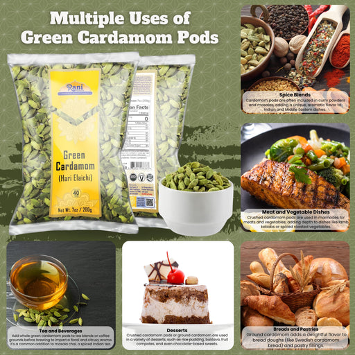Product Type: Whole Pods, 100% recleanedPackaging: Poly BagNet Wt. 7oz (200g)Product of IndiaAlternative Name (Indian) Hari Elachi Ingredients: Gre...