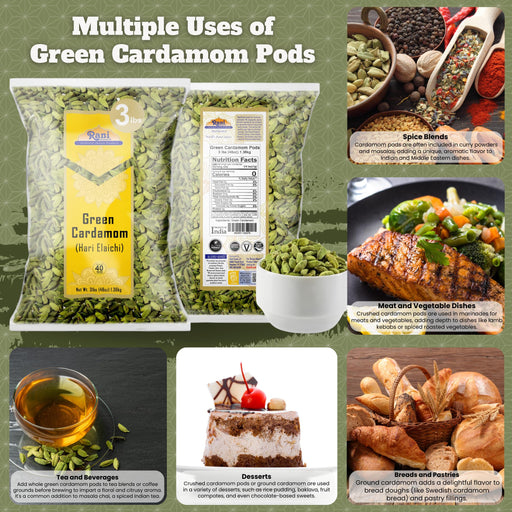 Product Type: Whole PodsPackaging: Plastic BagNet Wt. 48oz (3lbs) 1.36kgProduct of India Alternate Name: Elachi Ingredients: Green Cardamom Pod...