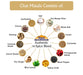 Ingredients: Dry Mango Powder, Salt, Black Salt, Cumin, Black Pepper, Pomegranate, Coriander, Mint, Ajwain (Carom), Ginger, Nutmeg, Chili, Caraway, Cloves, Asafetida