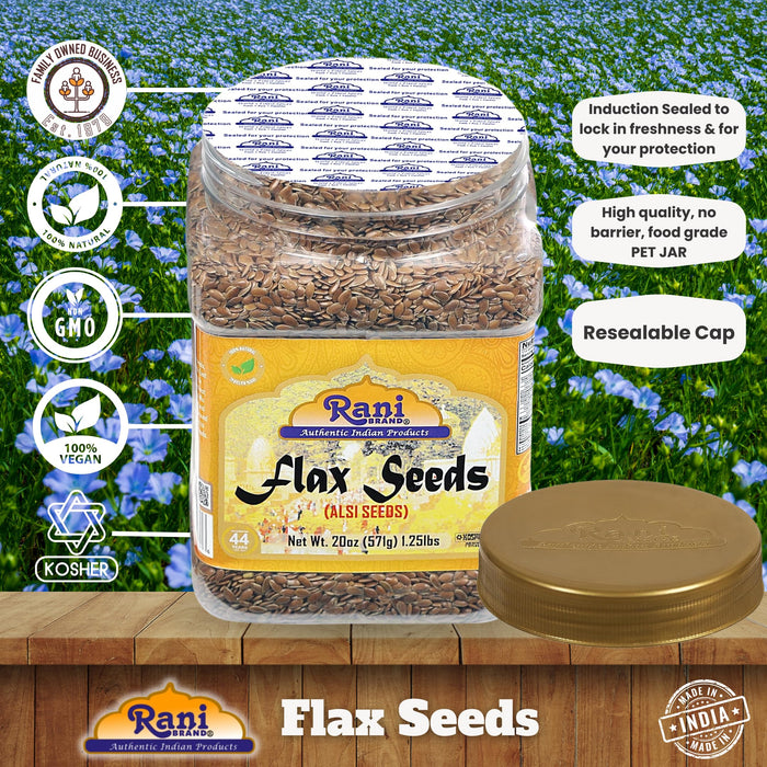 Rani Flax Seeds Whole Raw (Alsi, Linum usitatissimum) 20oz (567g) PET Jar | All Natural ~ Gluten Friendly | NON-GMO | Vegan | Kosher | Product of USA